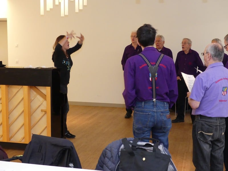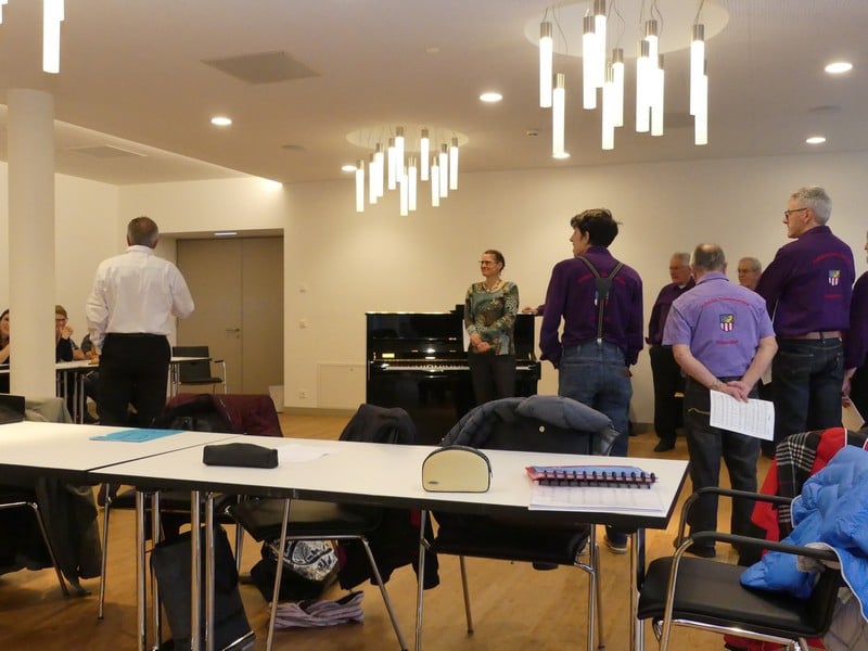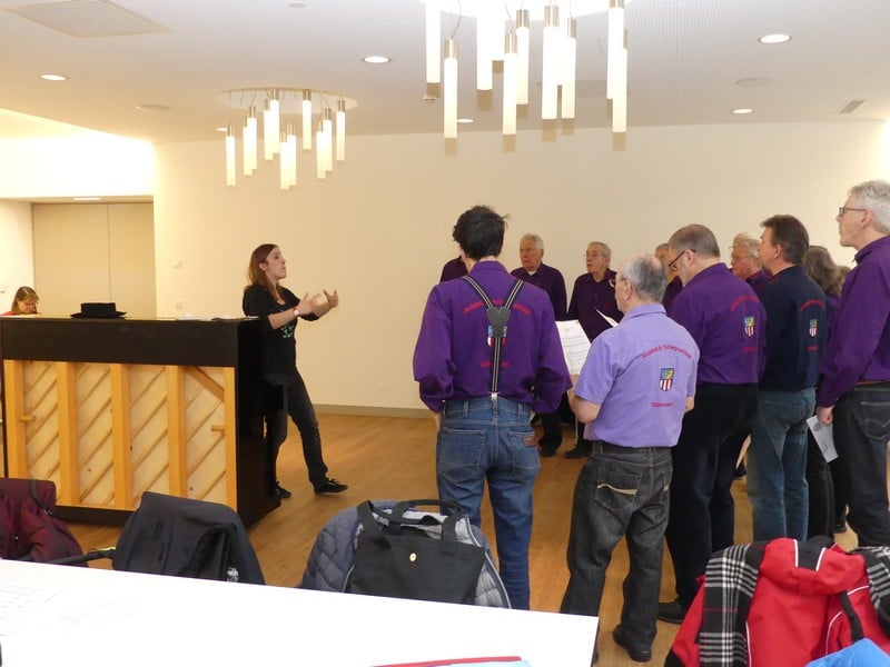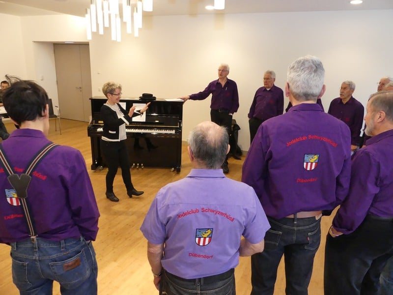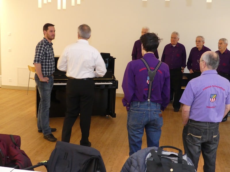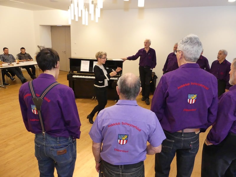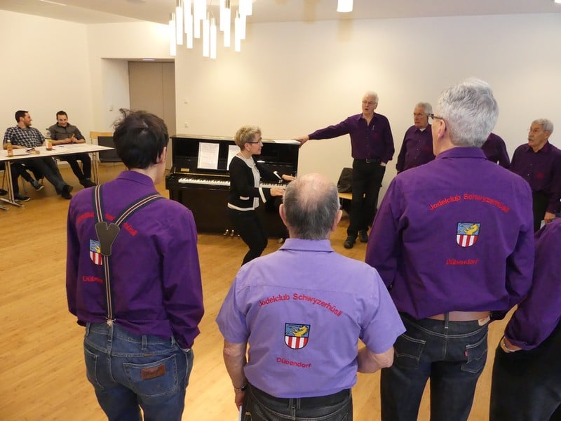 Die beiden Klubs aus Grüningen und Dübendorf haben sich an diesem Samstag dem laufenden Dirigentenkurs des NOSJV als Übungschor zur Verfügung gestellt. Gecoacht durch die beiden erfahrenen Lehrer