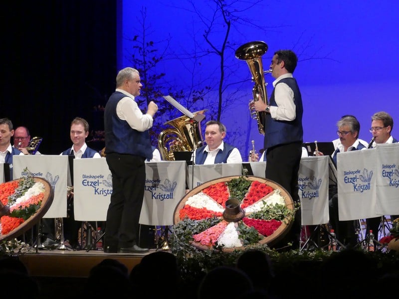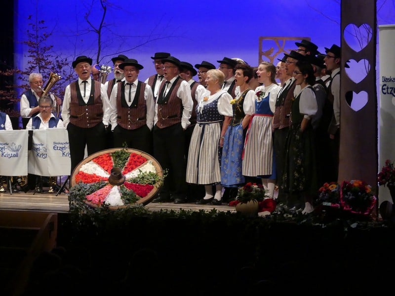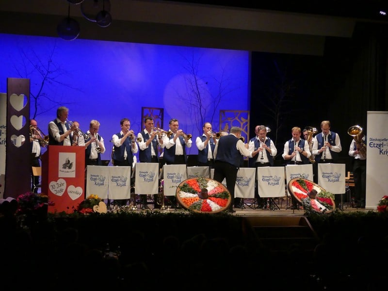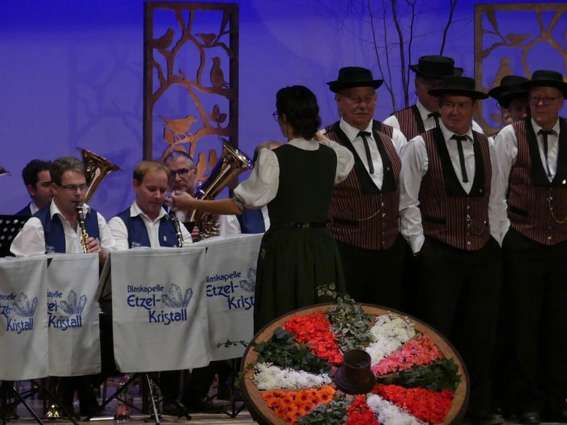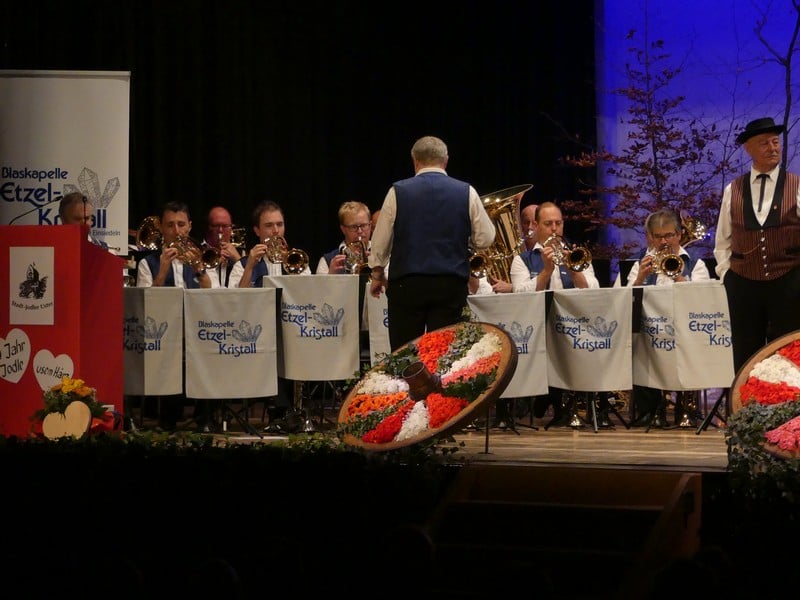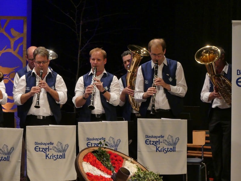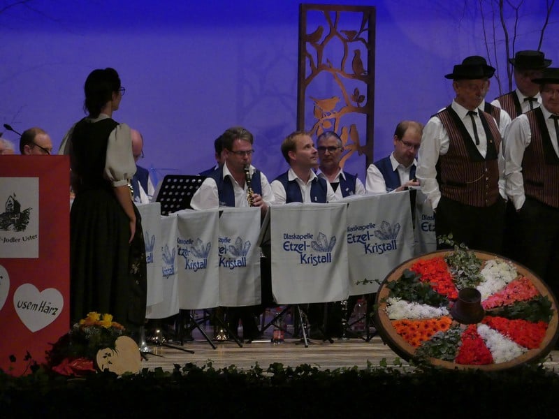 Als Wanderer habe ich den Etzel als Berg in Erinnerung, der vor allem aus Nagelfluh und Sandstein besteht. Man würde mich wohl zurecht für einen Deppen halten, sollte ich in diesem Gebiet ernsthaft auf Kristallsuche gehen. Legt man "Kristall" allerdings sinnbildlich aus, wird man sehr wohl fündig. Es gibt da nämlich eine Blaskapelle, die sich nach dem begehrten Gestein benennt, die Blaskapelle Etzel-Kristall. Und genau diese Kapelle war nun zu Gast am Jodlerabend in Uster.