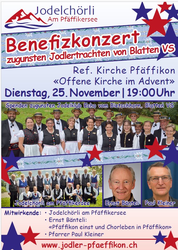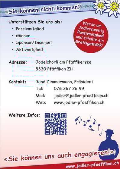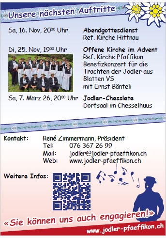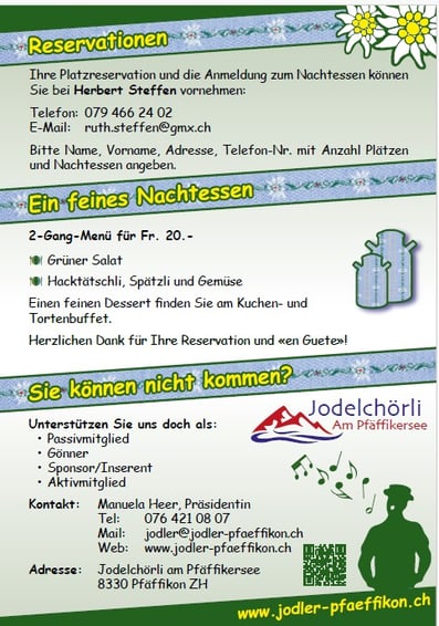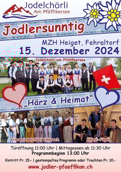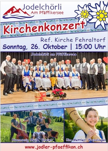 Das Jodelchörli am Pfäffikersee lädt herzlich ein, zum stimmungsvollen Kirchenkonzert.